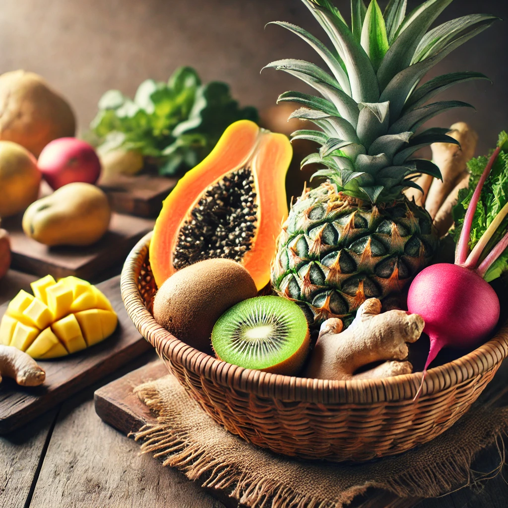 - 파인애플, 키위, 파파야, 무, 생강 등